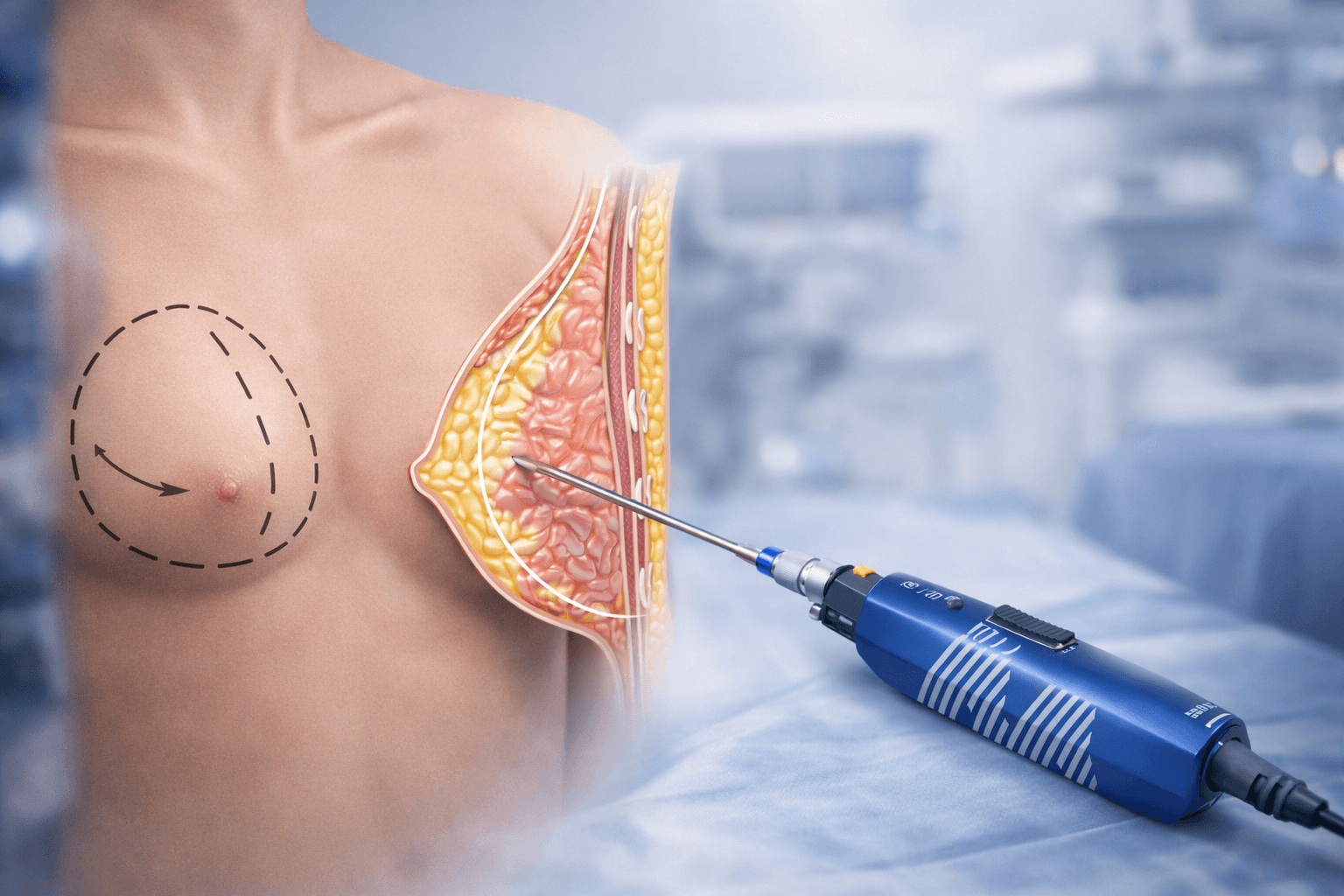 Bei der Gynäkomastie, insbesondere bei gemischten Formen (adipöse und fibroglanduläre Komponenten), besteht eine der technischen Herausforderungen in der höheren Fibrosität des Gewebes. Das männliche Brustgewebe ist häufig dichter und widerstandsfähiger als Fettgewebe in anderen Körperregionen.